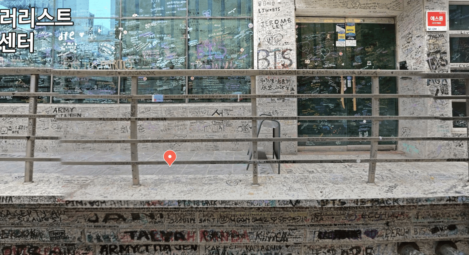 - Building walls covered with messages and graffiti from ARMY worldwide