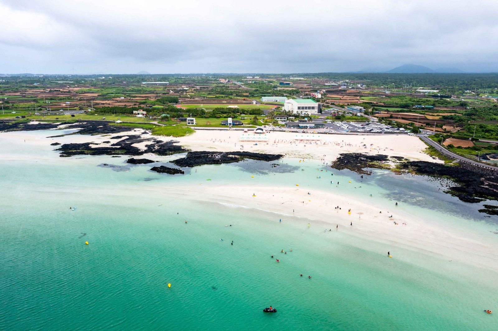 Gimnyeong Seongsegi Beach, located in Gimnyeong-ri, northeastern Jeju Island, is a beautiful beach characterized by its emerald waters and pristine white sand. Although relatively small, measuring only about 200 meters in length, the harmony of white sand and black lava rocks creates a unique landscape.