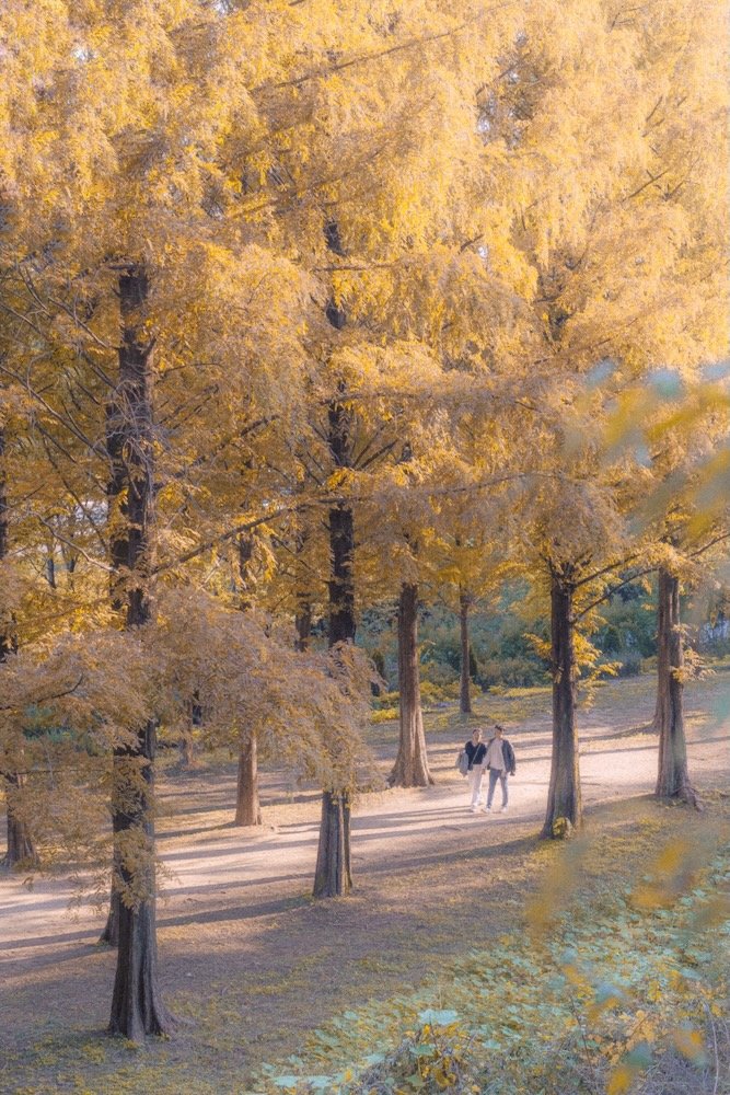 Haneul Park Metasequoia Trail is a peaceful and charming walking path within Haneul Park in Sangam-dong, Mapo-gu, Seoul. Lined on both sides by beautifully draping metasequoia trees, it offers a peaceful and charming forest path.