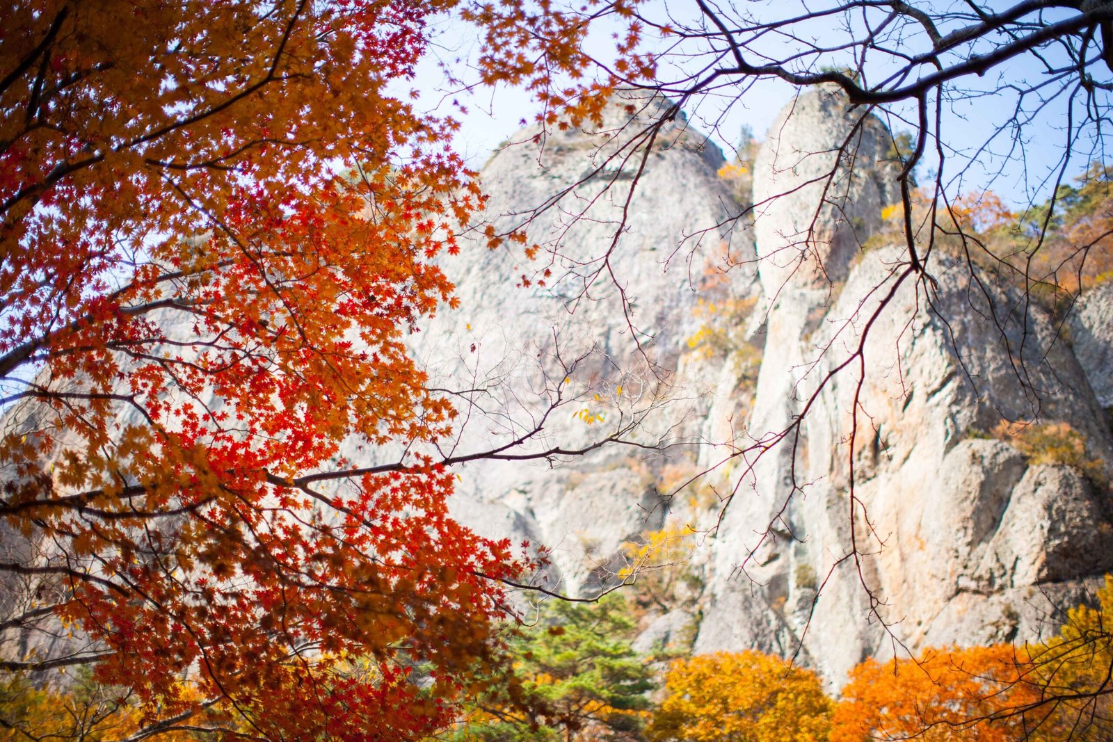 *The diverse natural landscapes, including Yongyeon Falls, Jeolgol Valley, and various rock formations, are beautiful in all four seasons, but the contrast of crimson leaves and the valleys creates a particularly spectacular scene in autumn.