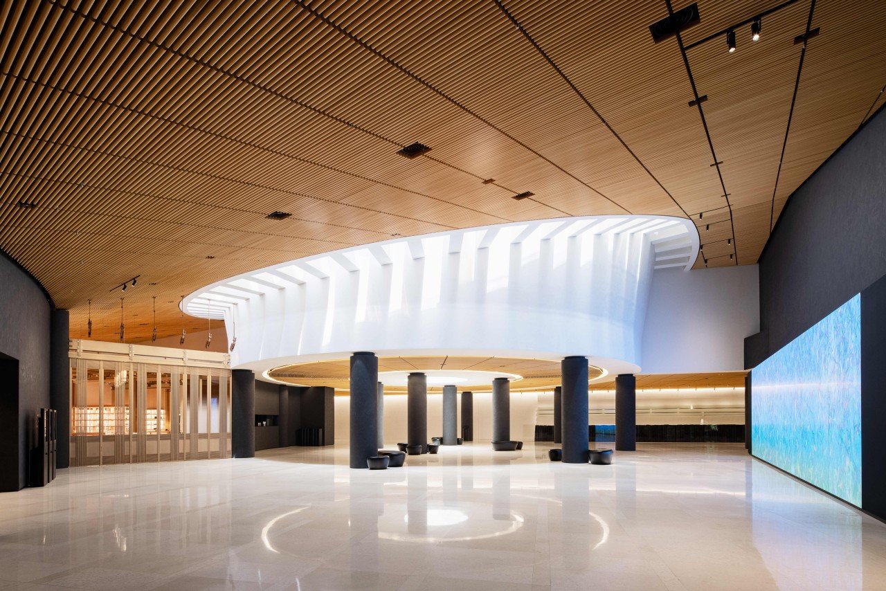 The building itself is a unique structure designed by world-renowned architects Mario Botta, Jean Nouvel, and Rem Koolhaas, and its interior spaces, landscaping, and modern exhibition environment are noteworthy.