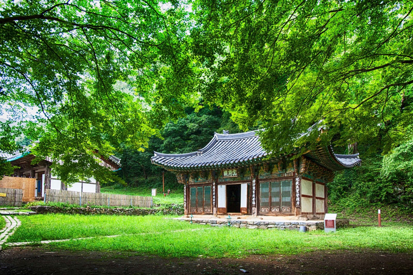 A yew tree, said to have been planted by Kim Gu, stands in front of Daegwangbojeon Hall.