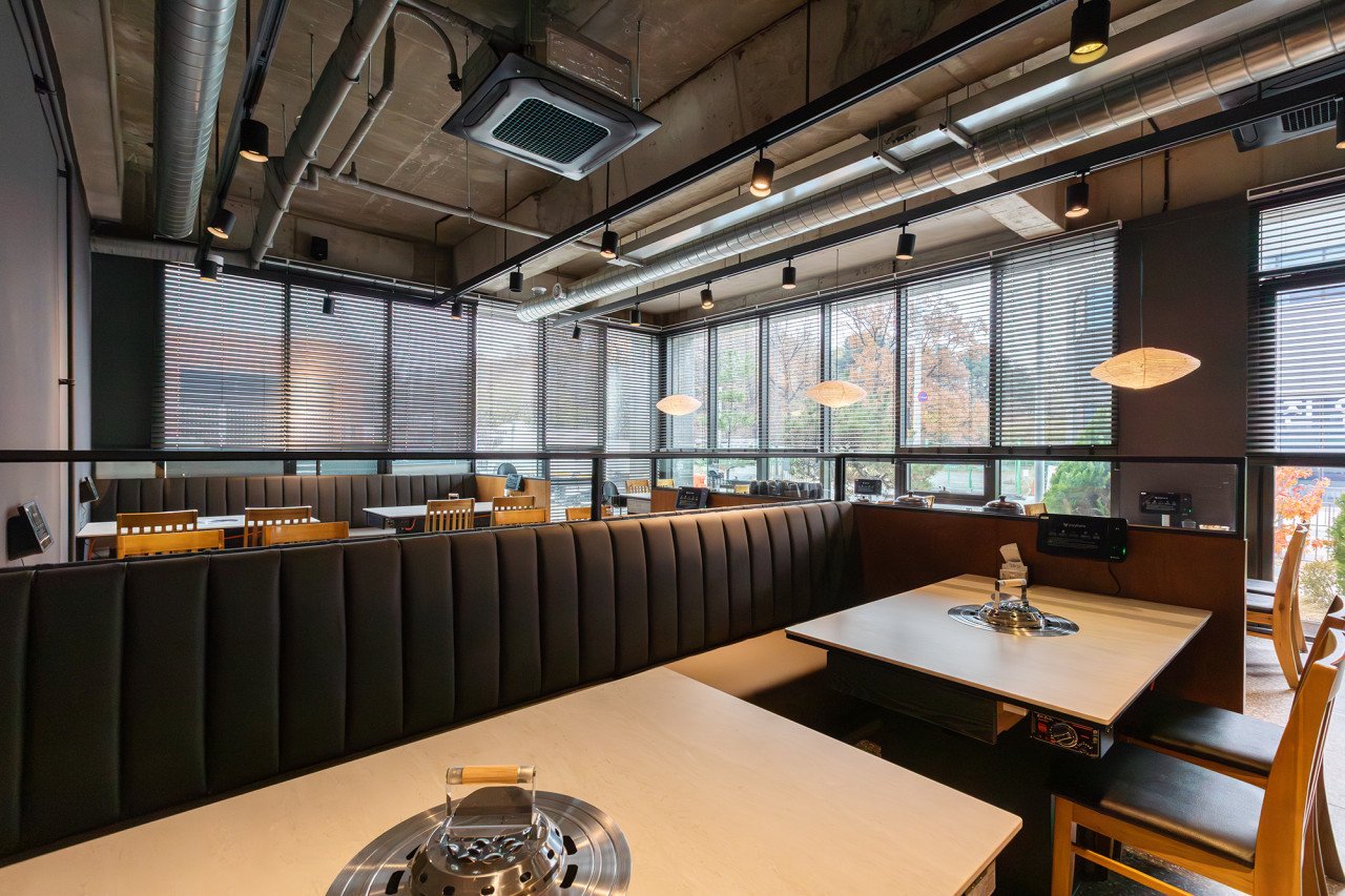 The spacious venue offers excellent openness, with a downward draft system pulling smoke from below for comfortable dining.
