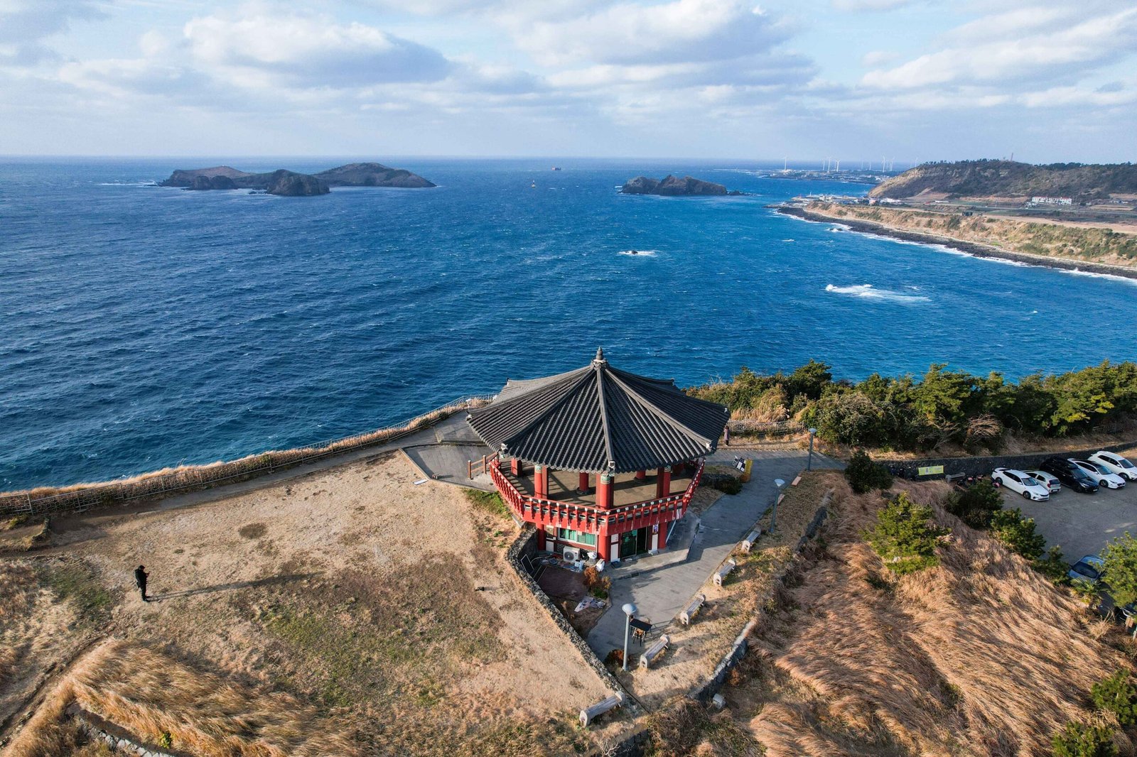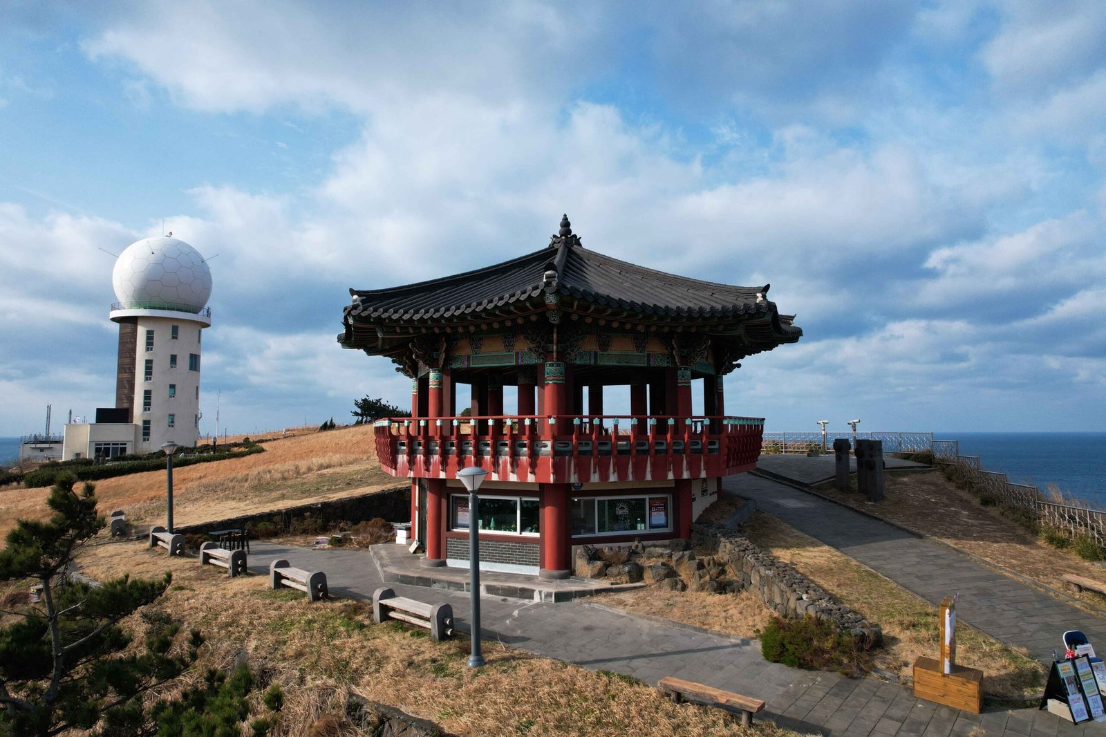 Atop Suwolbong Peak, a small pavilion called “Suwoljeong” offers visitors a panoramic view. On a clear day, visitors can enjoy panoramic views of nearby attractions, including the beautiful Chagwido Island (Jeju’s flagship island), Songaksan Mountain, and Jukdo Island. The gentle, short hiking trail makes for an easy climb. Below the summit, a small temple and coastal cliffs (Eungal) offer a wealth of natural attractions.